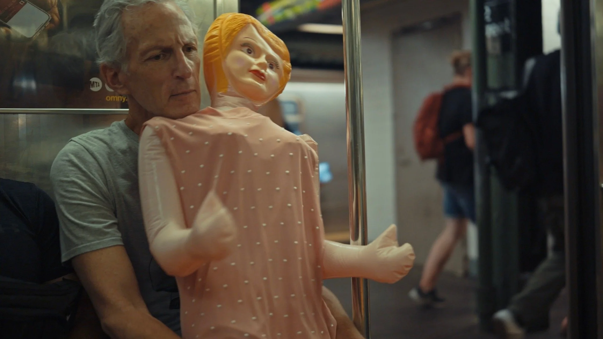 The new video podcast series, LARRY SILVER on Senior Dating. We meet Upper West Side New Yorker, Larry Silver, who shares his experiences trying unsuccessfully to find his ideal partner. Here he is pictured with Charlene in the new episode, “Larry Gets a Doll.” This episode follows the groundbreaking, LARRY SILVER. “Sorry Wrong Person.” Directed and filmed by Jonathan Wright. Starring Jeffrey Grover as Larry.